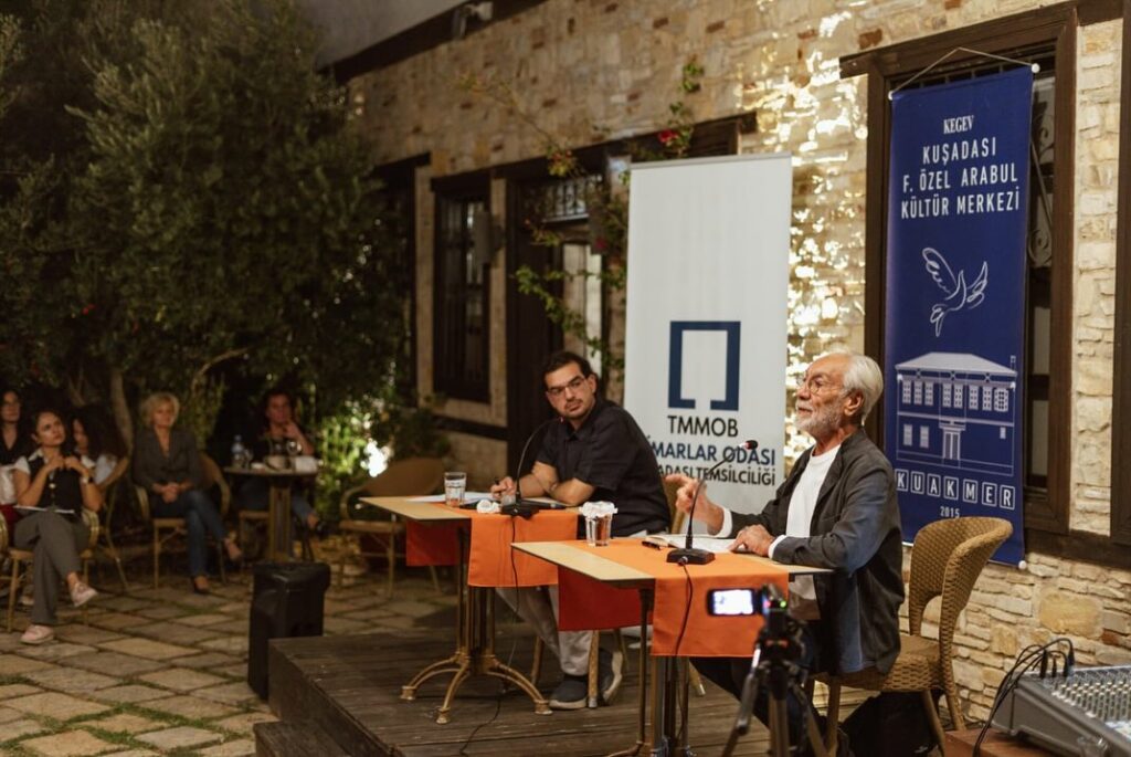 Mimarlar Odası Kuşadası Temsilciliği’nin Mimarlık Haftası kapsamında gerçekleştirdiği etkinliklerin açılışı Nevzat Sayın’ın “Kıyıda Yaşamak” başlıklı konuşması ile KUAKMER’de gerçekleşti.